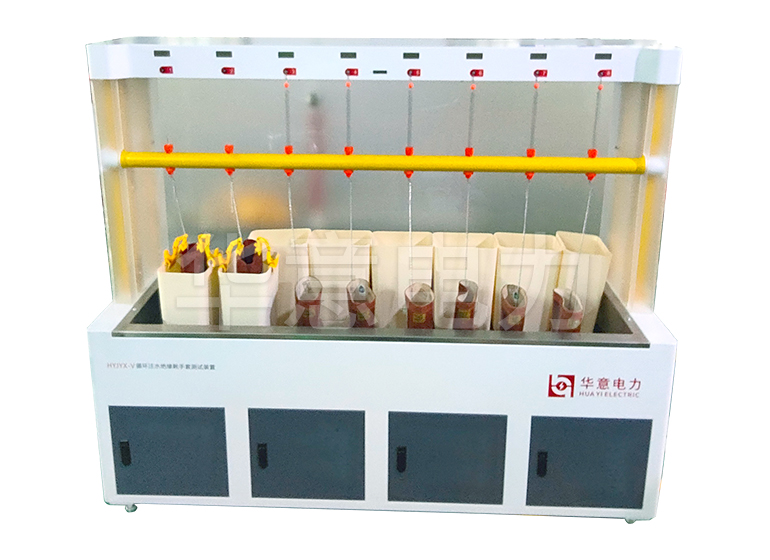 循環(huán)注水絕緣靴手套測試裝置可以同時(shí)進(jìn)行8只絕緣靴或絕緣手套的試驗,可分別測量泄漏電流;測試臺采用臺式結構,8個(gè)試品單列排放,適合靠墻放置。