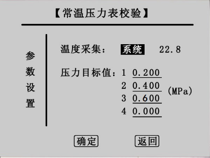 在主界面上光標選中“常溫壓力表校驗”項,“按下選定”則進(jìn)入常溫壓力表校驗界面,如圖3.8所示。