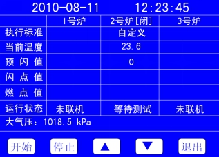 ◆按“退出”鍵儀器退出測試狀態(tài),所有的測試爐停止任何動(dòng)作返回到畫(huà)面6-1。