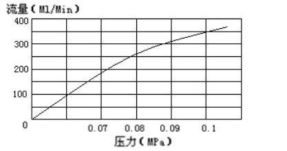 空氣氣路經(jīng)穩壓閥穩壓,結合固定氣阻輸出一定流量的空氣。在表壓0.1Mpa時(shí)流量約為400ml/min。請參照儀器附帶空氣壓力—流量曲線(xiàn)圖。
