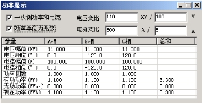 在該顯示框中,默認顯示的是二次側的各種幅值、相位、功率等數據。若需顯示一次側的數值,如用于對現場(chǎng)表計進(jìn)行校驗時(shí),只需選“一次側功率和電流”,并輸入相應的TV和TA變比即可。點(diǎn)選“功率單位為兆級”,可使功率顯示單位由“KW、KVar”自動(dòng)轉換為“MW、MVar”。