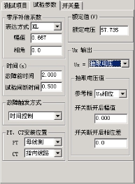 如果需要測試檢同期或檢無(wú)壓重合閘的情況,則需要將UX設置為線(xiàn)路抽取電壓,并正確設置抽取電壓相、開(kāi)關(guān)斷開(kāi)情況下的電壓值、電壓角差等。詳細內容見(jiàn)前述的“UX輸出”部分說(shuō)明。
