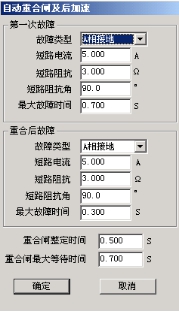 重合前故障的“最大故障時(shí)間”應大于設置的短路電流或短路阻抗對應的保護段的整定動(dòng)作時(shí)間,重合后故障的“最大故障時(shí)間” 應大于設置的短路電流或短路阻抗對應的加速保護段的加速延時(shí)?!爸睾祥l等待時(shí)間”應大于重合閘整定時(shí)間。