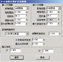 0.95倍與1.05倍的整定倍數是針對第二次故障時(shí)“非全相零序定值”的。所以窗口中的“不靈敏零序定值”必須依照保護實(shí)際的整定值設置。第二次故障的“最大故障時(shí)間”應大于非全相零序保護的“整定動(dòng)作時(shí)間”。