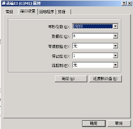 7. 在彈出的對話(huà)框中的“端口設置”頁(yè)中,一般選擇“每秒位數”19200,如右圖所示:然后按下“高級”按鈕;