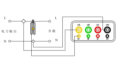 單相電測量將火線(xiàn)接到儀表的UA相,零線(xiàn)接到UN。電流鉗傳感器鉗到火線(xiàn)上接入IA插孔。