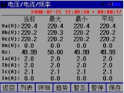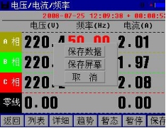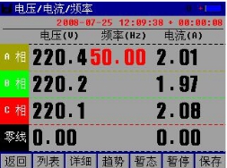 電壓/電流/頻率可測量三相電壓、A相電壓頻率、三相電流以及零線(xiàn)電壓和零線(xiàn)電流。