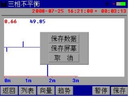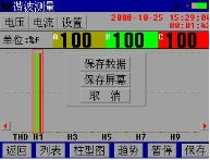 ????點(diǎn)擊保存鍵彈出保存選擇界面,選擇“保存數據”可保存當前測量數據,選擇“保存屏幕”可以圖片方式保存當前顯示界面。諧波測量數據都保存在HAR00001.PQD中。