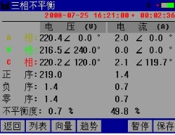 三相不平衡可用于測量三相四線(xiàn)電系統的電壓(負序)不平衡度、電壓零序不平衡度和電流(負序)不平衡度、電流零序不平衡度。