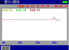 檢測過(guò)程中,當檢測到浪涌事件時(shí),儀表自動(dòng)將相關(guān)數據進(jìn)行保存,直至檢測到最多40個(gè)浪涌事件,儀表停止檢測。檢測過(guò)程中用戶(hù)也可通過(guò)點(diǎn)擊 返回中斷檢測。
