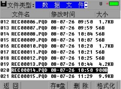 ????儀表數據管理、查看,刪除。儀表數據文件有兩種格式:*.PQD(數據存儲文件) 及 *.BMP(屏幕圖片)。分別如圖9-2 及 圖9-3。