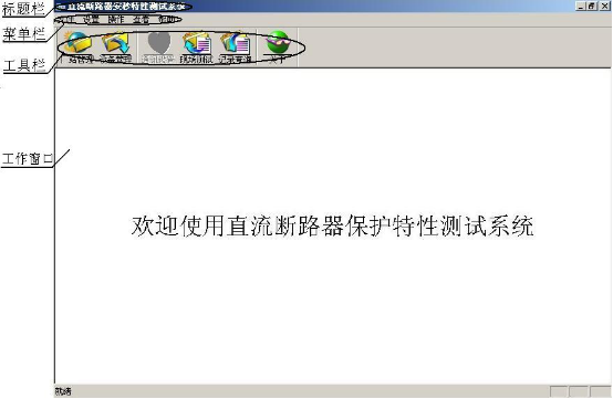 如圖1所示,直流斷路器安秒特性測系統的主界面包括標題欄、菜單欄、工具欄和工作窗口。