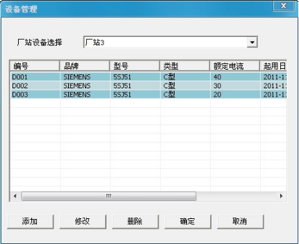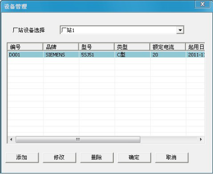 另外在該界面中用戶(hù)還可以對已添加的設備信息進(jìn)行“修改”和“刪除”。若用戶(hù)需要修改設備信息,首先選中需要修改的設備編號,然后點(diǎn)擊“修改”按鈕,在彈出的對話(huà)框中對斷路器參數信息進(jìn)行修改,修改完成后,點(diǎn)擊“確定”則保存修改后的設備信息,點(diǎn)擊“取消”不修改。用戶(hù)需要刪除設備信息,選中一條設備信息然后點(diǎn)擊“刪除”,在彈出的對話(huà)框中點(diǎn)擊“是”即可刪除,點(diǎn)“否”則不刪除。