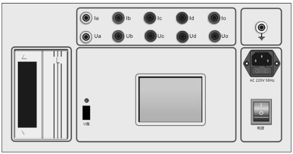 ????每一對Ux和Ix端子(x代表輸出通道a,b,c,d,o)接一把測試鉗,夾到相應的接地線(xiàn)端子上