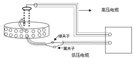 注意:HV插口輸出10kV危險電壓,將高壓絕緣電纜插在HV插口上