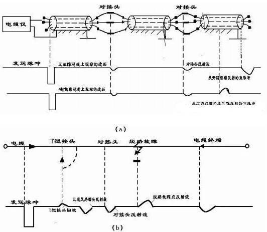 ? 測試時(shí),在故障相上注入低壓發(fā)送脈沖,該脈沖沿電纜傳播直到阻抗失配的地方,如果中間接頭、T 型接頭、短路點(diǎn)、斷路點(diǎn)和終端頭等,在這些點(diǎn)上都會(huì )引起波的反射,反射脈沖回到電纜測試端時(shí)被試驗設備接收。