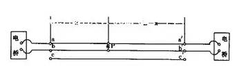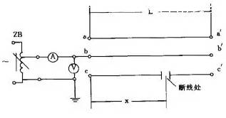 ②在電纜的末端再測量每相芯線(xiàn)的電容電流Ia′、Ib′、Ic′的數值,以核對完好芯線(xiàn)與斷線(xiàn)芯線(xiàn)的電容之比,初步可判斷出斷線(xiàn)距離近似點(diǎn)。