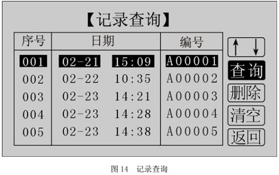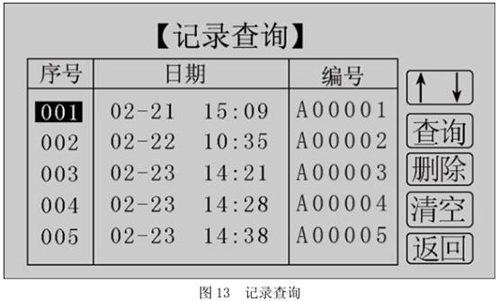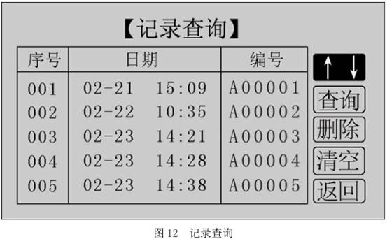 ? 在“主界面”點(diǎn)擊“記錄查詢(xún)”,系統進(jìn)入“記錄查詢(xún)”界面,如圖 12 所示。