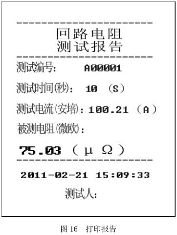 ? 點(diǎn)擊“打印”項,系統打印樣品編號、測試時(shí)間、測試電流、電阻值、測試日期在內的所有信息。