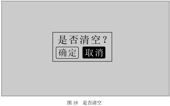 ? 點(diǎn)擊“清空”,系統提示“是否清空?”, 如圖 18 所示。點(diǎn)擊“確定”清空所有記錄;點(diǎn)擊“取消”,返回上一界面。