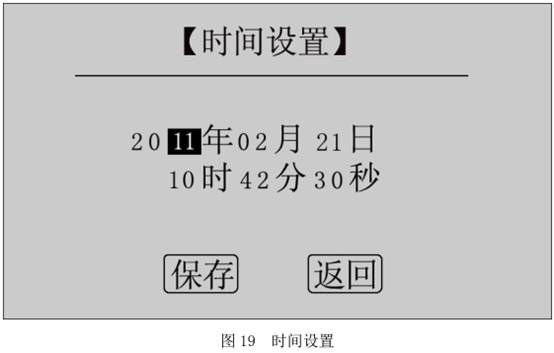 ? 在主界面下點(diǎn)擊“時(shí)間設置”,進(jìn)入“時(shí)間設置”界面,如圖 19 所示。