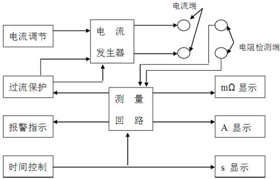 ? 接地電阻測試儀采用了測試電源、測試電路、指示器和報警電路。測試電源產(chǎn)生測量電流,測試電路將電流信號和流過(guò)被測電阻上電流所產(chǎn)生的電壓信號進(jìn)行處理,完成交直流轉換,進(jìn)行除法計算,指示器由時(shí)間、電阻、電流顯示窗口組成,如果被測電阻大于報警值,儀器發(fā)出斷續的聲光報警,如果測試電流不小于28A,就發(fā)出連續的聲光報警,并關(guān)閉測試電流,保證被測電器的安全。