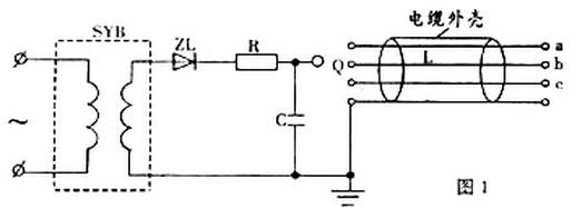 ? 所謂測聲法就是根據故障電纜放電的聲音進(jìn)行查找,適合與電纜隧道及電纜溝內的電纜故障診斷方法。該方法對于高壓電纜芯線(xiàn)對絕緣層閃絡(luò )放電較為有效。此方法所用設備為直流耐壓試驗機。電路接線(xiàn)如圖1所示,其中SYB為高壓試驗變壓器,C為高壓電容器,ZL為高壓整流硅堆,R為限流電阻,Q為放電球間隙,L為電纜芯線(xiàn)。