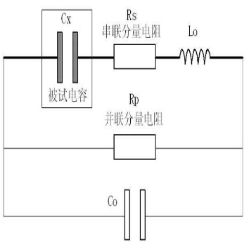圖中,Cx 為實(shí)際電容量,Rs 為引線(xiàn)電阻,Lo 為引線(xiàn)電感,Rp 為極間絕緣電阻,Co 為極間分布電容,實(shí)際電感、電容、電阻并非理想的電抗或電阻元件,而是以串聯(lián)或并聯(lián)形式呈現為一個(gè)復阻抗元件,本儀器根據串聯(lián)或并聯(lián)等效電路來(lái)計算其所需值,不同等效電路將得到不同的結果,其不同性取決于不同的元件。一般對于低值阻抗元件(基本是高值電容和低值電感)用串聯(lián)等效電路。使用并聯(lián)等效電路。根據現場(chǎng)實(shí)際使用情況只有兩種,(1)測試器件內部品質(zhì)變化,選擇等效方式為“并聯(lián)等效”; (2) 測試器件外部連接導線(xiàn)電阻變化,選擇等效方式為“串聯(lián)等效”。