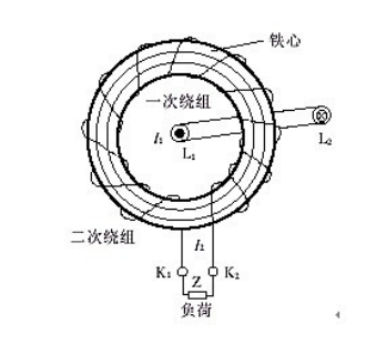 ? 穿心式電流互感器其本身結構不設一次繞組,載流(負荷電流)導線(xiàn)由L1至L2穿過(guò)由硅鋼片搟卷制成的圓形(或其他形狀)鐵心起一次繞組作用。二次繞組直接均勻地纏繞在圓形鐵心上,與儀表、繼電器、變送器等電流線(xiàn)圈的二次負荷串聯(lián)形成閉合回路,如下圖所示