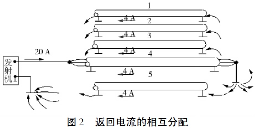 ? 4) 電纜識別與確定。需要延長(cháng)或更換的電纜所在的電纜溝內有5 根待檢測的電纜,如圖2,假如第一次測試想要識別的是所畫(huà)的4 號電纜,把識別儀主機的輸出電流給定為20 A。5 根電纜的屏蔽層中的返回電流應該自動(dòng)平均分配,包括想要識別的電纜中的返回電流也應有4 A,那么隨后在識別的電纜中檢測到: 20 A( 輸出) - 4 A( 返回) = 16 A的電流,而其他4 根電纜要么沒(méi)有電流指示,要么很小( 只有4 A 的電流) ,因此最終可以準確選擇出4號電纜。