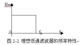 系統的故障電流、電壓信號中一般含有許多高頻分量。而常見(jiàn)的微機保護原理大多是基于工頻量的。這樣,為了避免不必要的抬高采樣頻率,一般微機保護器中都設置了前置低通濾波器。圖2-2描述了低通濾波器的理想頻率響應。圖中,fc為濾波器的截止頻率,是考察低通濾波器的一個(gè)重要指標。