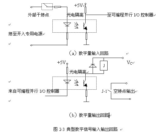 數字信號的輸入輸出,主要針對于微機保護器的人機接口和各種告警信號、跳閘信號及電度脈沖等。為防止外部干擾的竄入,一般在輸入輸出回路中均采用光電隔離措施。典型的數字信號輸入輸出回路如圖2-3所示。