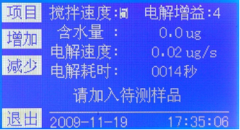 4、儀器檢測到加入的樣品后,將開(kāi)始電解過(guò)程,累加含水量。