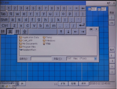 保存–把當前選中的顯示波形數據存入到指定的路徑/文件,如圖六。測試完畢后,如果操作者認為此次測試結果有保留價(jià)值,可用“保存”功能。界面將彈出文件保存的二級菜單。點(diǎn)擊二級菜單上的相關(guān)鍵后,在名稱(chēng)欄填入要保存的文件名,由“OK”鍵或“X”鍵確定此次測試結果的保存或取消