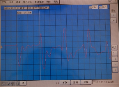 在以下速度值中選擇144M/μS、160M/μS、172M/μS、184M/μS或自選鍵入新的速度值。當有測量結果顯示時(shí),改變速度值后自動(dòng)修改測量結果并顯示。如圖十一。