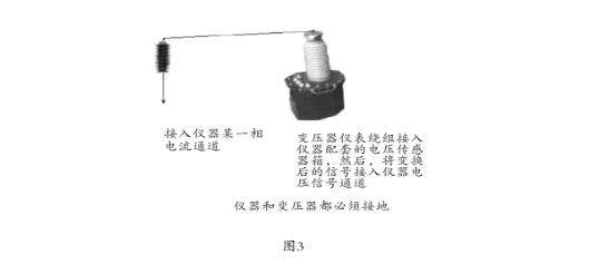 “變壓器儀表端”指試驗變壓器的儀表繞組,此電壓信號經(jīng)過(guò)配套的V/I變換有源傳感器接入儀器參考電壓信號通道,作為參考電壓信號。