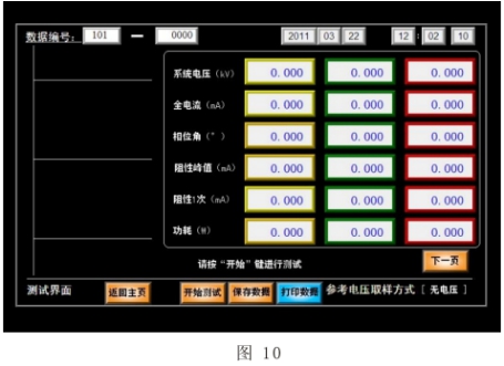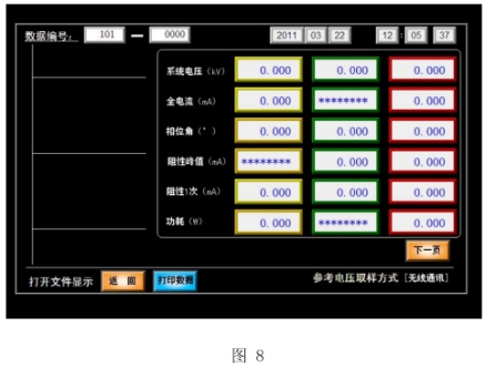 試驗完成后,如果想進(jìn)一步觀(guān)察其他數據,可點(diǎn)擊“下一頁(yè)”,圖11是阻性電流各成分的顯示界面。