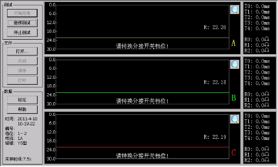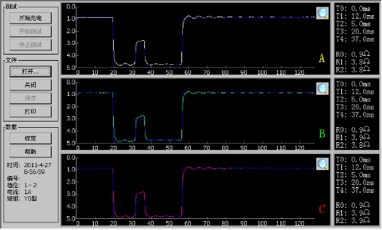 自動(dòng)切換檔位:選擇了自動(dòng)切換檔位,變壓器上的充電電流不停,不用重新設置變壓器的參數,可以實(shí)現連速測試,節約測試時(shí)間;