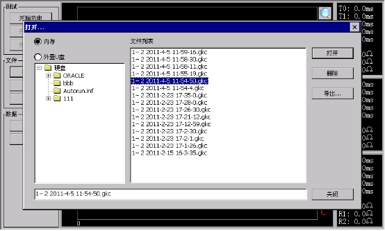 7.點(diǎn)擊“文件打開(kāi)”可以查詢(xún),保存 刪除 導出數據。