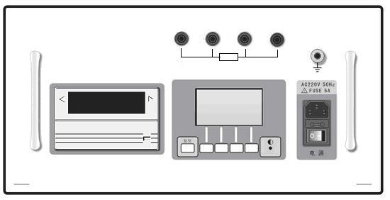 如上圖所示,輸出部分包括四個(gè)接線(xiàn)柱。其中外側的兩只接線(xiàn)柱為恒流源輸出,測試電流既通過(guò)它送到待測的電阻或變壓器。內側的兩只接線(xiàn)柱是測試電壓的輸入,本機即通過(guò)它來(lái)讀取待測電阻上的電壓值顯示和鍵盤(pán)控制部分。