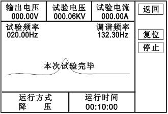 半自動(dòng)試驗:點(diǎn)擊“調諧”,則自動(dòng)調諧,調諧完成后點(diǎn)擊電壓“加、減”手動(dòng)升壓。