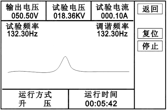 半自動(dòng)試驗:點(diǎn)擊“調諧”,則自動(dòng)調諧,調諧完成后點(diǎn)擊電壓“加、減”手動(dòng)升壓。