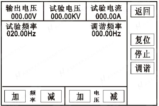 手動(dòng)試驗:點(diǎn)擊頻率“加、減”,則手動(dòng)調諧,調諧完成后點(diǎn)擊電壓“加、減”手動(dòng)升壓。
