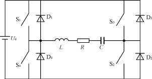 串聯(lián)諧振逆變器的基本原理圖包括直流電壓源,和由開(kāi)關(guān)S1~S4組成的逆變橋及由R、L、C組成的串聯(lián)諧振負載。其中開(kāi)關(guān)S1~S4可選用IGBT、SIT、MOSFET、SITH等具有自關(guān)斷能力的電力半導體器件。逆變器為單相全橋電路,其控制方法是同一橋臂的兩個(gè)開(kāi)關(guān)管的驅動(dòng)信號是互補的,斜對角的兩個(gè)開(kāi)關(guān)是同時(shí)開(kāi)通與關(guān)斷的。