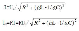 該電路的阻抗是電源角頻率ω的函數:Z=R+j(ωL-1/ωC)