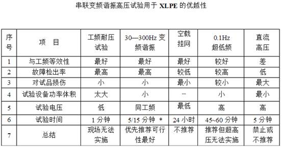 現就XLPE試驗的幾種主要方法做一對比說(shuō)明。明顯可以看出被國內、外有關(guān)標準化機構和專(zhuān)家推薦的串聯(lián)變頻諧振試驗的優(yōu)越性。