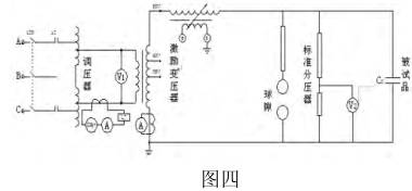 利用串聯(lián)諧振的原理,生產(chǎn)出串聯(lián)諧振耐壓實(shí)驗儀,可以對發(fā)電機組、電力變壓器、電力電容器、電力電纜等電氣設備進(jìn)行耐壓測試。串聯(lián)諧振耐壓實(shí)驗儀由變頻電源、激勵變壓器、諧振電抗器、分壓器及被測試品五部分構成,儀器構成及測試物品連接如圖四所示。