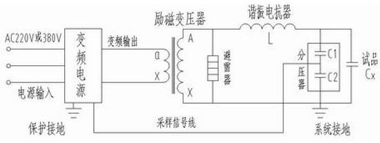 諧振交流耐壓裝置主要由變頻控制電源、激勵變壓器、電抗器、電容分壓器組成。其中變頻控制電源采用進(jìn)口專(zhuān)用的SPWM數字式波形發(fā)生芯片,頻率分辨率為16位,在20~300Hz時(shí)頻率細度可達0.1Hz,同時(shí)采用了正交非同步固定式載波調制方式,確保在整個(gè)頻率區間內輸出波形良好;功率部分采用了先進(jìn)的IPM模塊,確保諧振裝置儀器穩定和安全。
