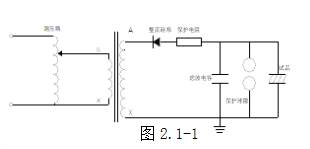 2.1.1工頻高壓整流 為獲得直流高電壓,通常采用工頻高電壓經(jīng)高壓硅堆整流而變換成直流高壓的方法,如圖2.1-1,圖中高壓變壓器輸出高壓經(jīng)過(guò)高壓負半波整流后得到高壓,該類(lèi)設備一般用于電壓較低的場(chǎng)合。