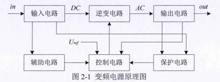 變頻電源原理圖如圖2-1,H相交流電壓380V通過(guò)輸入電路的整流,將交流變?yōu)橹绷鲀Υ嬗谥骰芈返碾娙萆?;再通過(guò)逆變電路逆變生成SPWM序列波形,通過(guò)低通濾波器濾波變?yōu)轭l率和幅值均可調的交流電壓??刂破靼ㄝo助電路、控制電路和保護電路,相當于整個(gè)系統的神經(jīng)中樞,用于控制各部分安全可靠運行,包括輸入電路、逆變電路工作W及外部輸入指令接收和系統各種保護的實(shí)現。